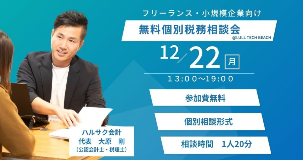このたび、LULL TECH BEACH ご利用者さまを対象に、無料の税務個別相談会を開催いたします。